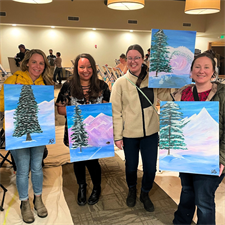 Each ticket includes (1) complimentary glass of house wine, beer, or a non-alcoholic beverage, plus all painting materils.